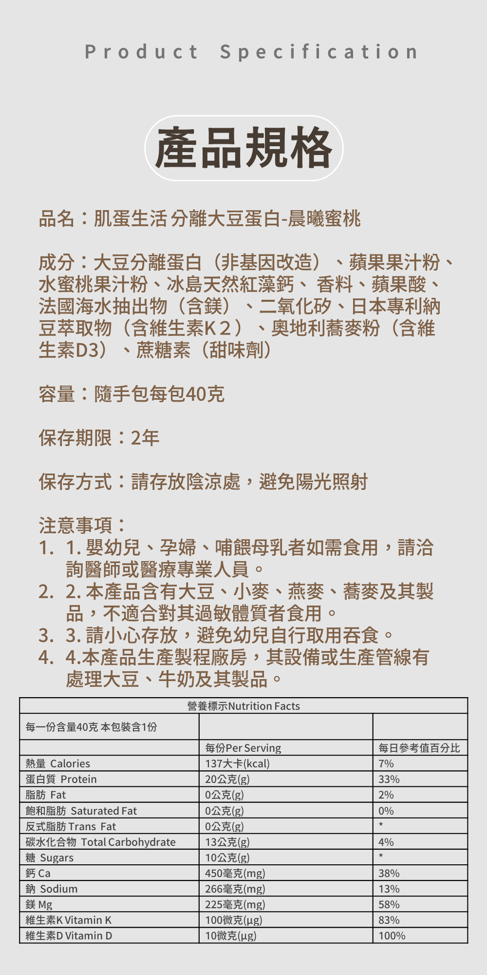 水蜜桃那份微甜不膩的戀愛滋味,連同滿滿的鈣鎂與維生素,被裝進這杯大豆蛋白飲裡。